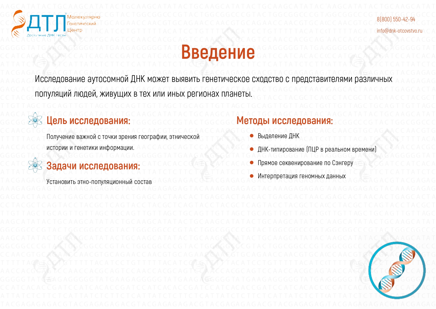 Чтобы установить национальность по ДНК в Балашихе, исследуются аутосомные маркеры ядерной ДНК. Уникальные вариации этих участков позволяют определить, к каким нациям принадлежит человек и какая национальность является доминирующей.
